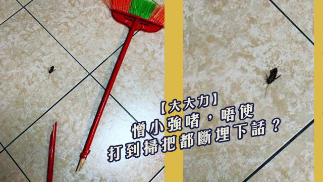 睇下,呢隻小強喺佢手下死得幾可憐,睇到毛毛都眼濕濕(我係真心㗎.jpg)……弱弱一問,到底一個人要去到幾憎小強先可以激動到連支掃把都打斷埋呢?