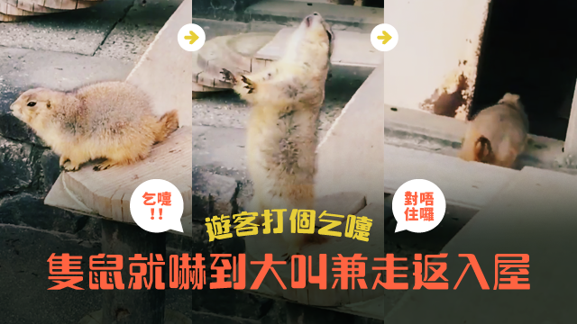 是咁的,話說有位日本網民就去咗動物園睇土撥鼠啦,點知睇睇下嗰陣一時忍唔住打咗個乞嚏,呢一聲巨響就嚇到阿鼠即時彈起,仲大叫咗幾聲喇!