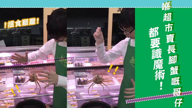 唔好以為呢位只係普通嘅四眼哥哥呀,賣長腳蟹只係佢表面嘅掩飾,其實佢真正身份係「大胃膏蟹飛」!唔信?睇住喇,佢一伸隻手出嚟咋,隻蟹就已經畀佢嘅神秘引力控制住,仲凌空飛起?!