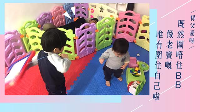不過咁,明明都冇做錯事,無啦啦畀爸爸媽咪圍住個感覺又真係幾慘豬嘅~台灣呢個阿B畀親爸爸媽咪圍住,冇得周圍探險就會開始喊喊,叫爸B點專心做嘢呀?唉,做老竇嘅,仲有得點呀,唯有反客為主,用圍欄圍住自己個小小嘅工作area啦……
