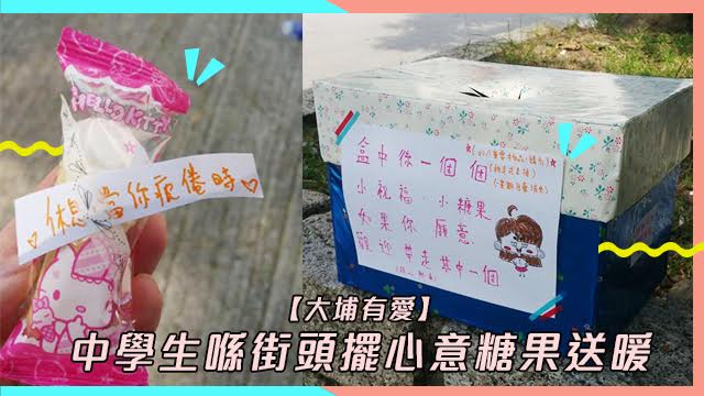 開心,本來真係可以好簡單嘅。有個中學生見大家生活壓力咁大,就特登整咗個放滿糖果嘅紙箱,放喺大埔街頭,等咁多位街坊經過嘅時候可以伸隻手入去抽下小禮物。以前成日聽人講「香港地隨街都有金執」呀,但估唔到執唔到金,隨街有糖拎都可以咁開心咁sweet㗎~
