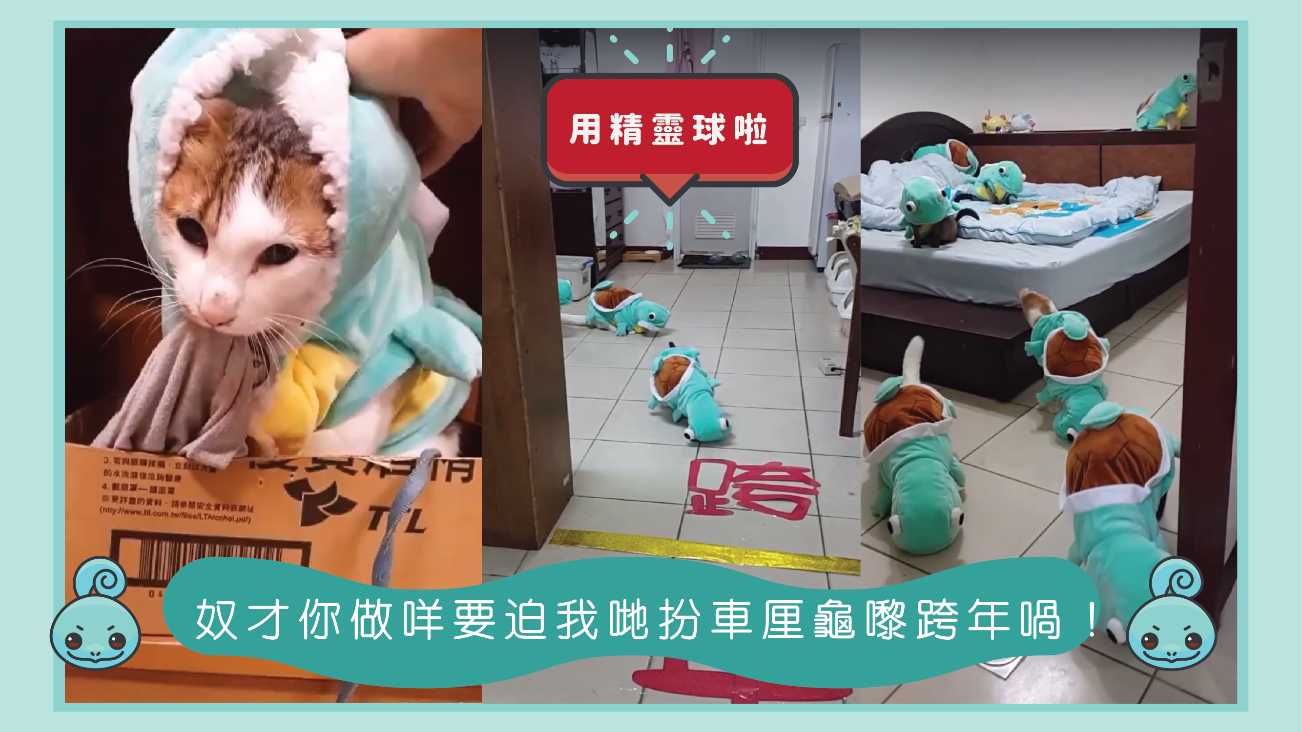 不過唔知係咪件車厘龜公仔衫個龜頭太重太大嘅關係呢,班主子sss著咗件公仔衫上身之後,視線就畀個車厘龜頭遮住,搞到老闆娘就算瘋狂用敲罐罐嘅聲音嚟引導佢哋,佢哋都用咗成兩分鐘先完成到呢個跨年儀式。