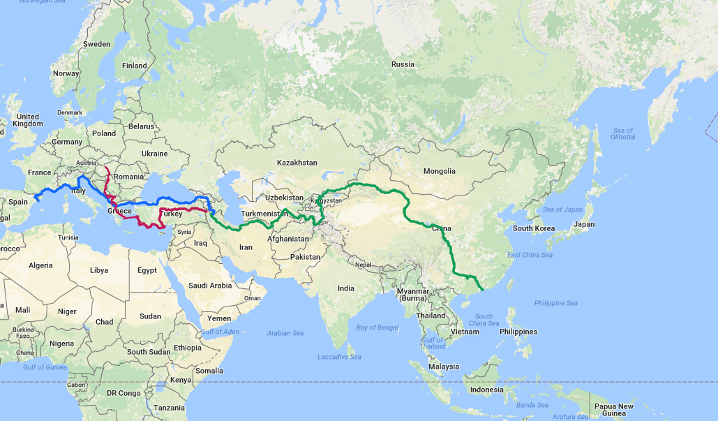 喺伊朗分手後,Tim沿住之前計劃嘅路線,穿過北土耳其向西班牙出發(藍線);而阿欣就喺土耳其慢慢踩到匈牙利布達佩斯(紅線)。
