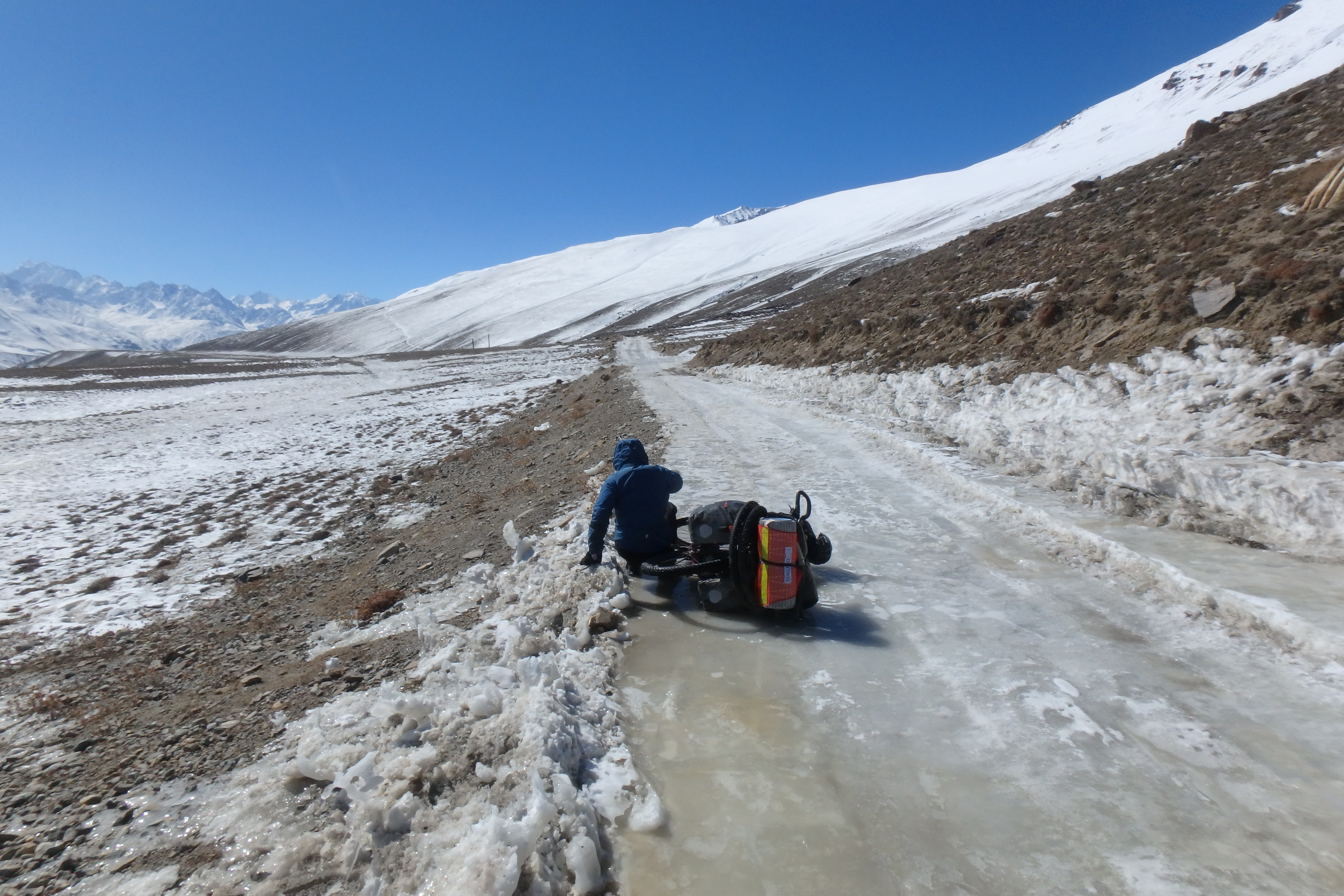 如果遇到融雪,情況更加不堪設想,只有推車先可以前進到,或者連人帶車一齊跣落山。