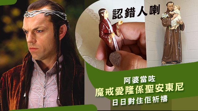 多得Google有搜尋圖片呢個功能,簡直係造福萬民呀~終於畀婆婆屋企人發現到呢個「偽・聖安東尼」原來係《魔戒》嘅精靈王愛隆呀!不過要說服婆婆都唔容易㗎,話晒婆婆對住佢祈禱咁多年,有感情㗎嘛!最後婆婆都換返個啱嘅像嚟祈禱,但係佢一啲都唔擔心之前啲祈禱冇用喎,咁又係,愛隆咁nice,應該唔介意幫婆婆傳話嘅。