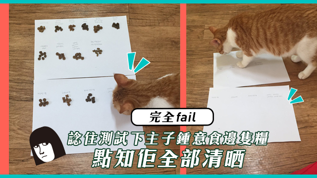 愚蠢嘅人類,乜你真係以為咁樣樣就可以知道主子嘅心意喇咩?呢位奴才原本諗住呢個方法一定掂過碌蔗啦,點知呢隻主子竟然將咁多款乾糧一粒不漏咁食晒落肚……嗚嗚!主子隻隻糧都食晒落肚,咁主子即係最鍾意食邊款呀?咁呢位奴才以後又應該入邊隻貨好呀?
