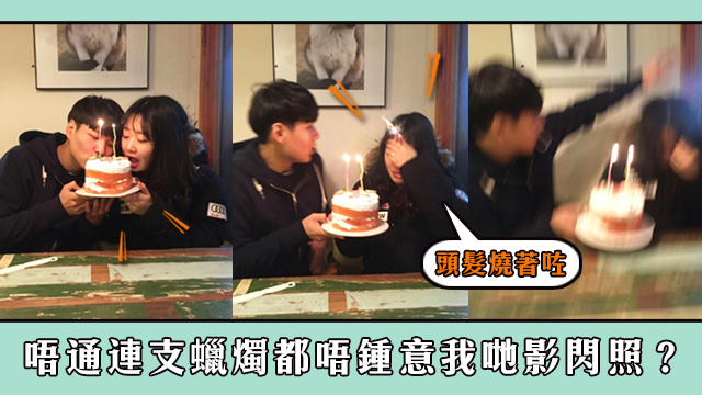 估唔到毛毛迴一迴避,呢位韓妹就出事喇!哎呀,都話咗兩個人拍拖唔好咁黐身要畀返啲空間大家㗎啦,個韓妹就咁畀支蠟燭燒著咗佢執空氣瀏海喇……唔通連支蠟燭都葡萄佢哋影放閃照?