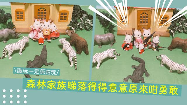 雖然係玩返同一件玩具,不過話晒都大個仔喇,梗係有自己一套玩法啦。森林家族嘅小動物咁打耳,幫佢哋著下衫仔開下Party咪好囉,做咩搵啲硬膠猛獸圍住佢哋呀?!唔通個玩具主人係變態嘅,最鍾意睇森林家族驚到腳軟個樣?