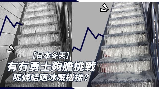 啲人成日怨香港冇雪落,冇得過白色冬天,哼,如果真係咁凍,仲邊有得玩衝樓梯呀!日本呢條樓梯凍到冰封晒,睇你仲夠唔夠膽跑上去!如果呢條係返屋企必經嘅樓梯咁就慘慘豬喇,行又實跣到攤攤腰,唔行又喺屋外凍死……