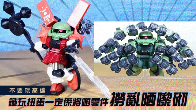對於地獄黑仔王嚟講,扭蛋最痛除咗抽唔到自己想要嗰隻,莫過於係抽到幾隻都係重複呀!抽親都係嗰一隻,唔通連個天都唔鍾意我?不過偉大嘅「笨大」,知道大家嘅慘況,今期出嘅Gundam扭蛋唔止可以瘋狂加零件,仲開放投稿等大家發揮創作力量同幻想,咁咪重複100隻都唔怕囉~