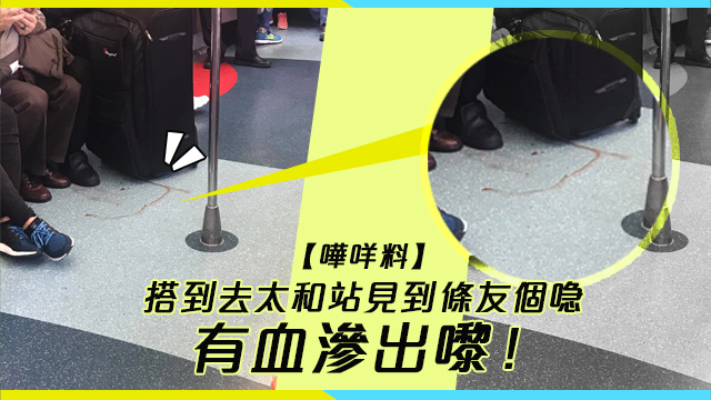 話說,今朝有網民喺facebook group「North District 北區」度upload咗張相,相入面仲有個滲緊血水嘅喼?,呢位網民話佢搭地鐵搭到去太和站嘅時候,無意中發現到其中一位乘客個喼有血滲出嚟喎……唔通光天化日之下有人用喼嚟搬運屍體?嘩,唔係咁恐怖呀嘛!