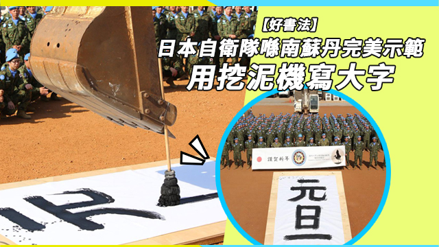 而寫得咁辛苦就梗係要影返張大合照啦~其實呀,呢班自衛隊而家喺好遠嘅南蘇丹當緊值,所以咪想用特別嘅方法向日本市民同屋企人拜個年咁囉,希望佢哋都可以快啲收工同屋企人團聚啦!
