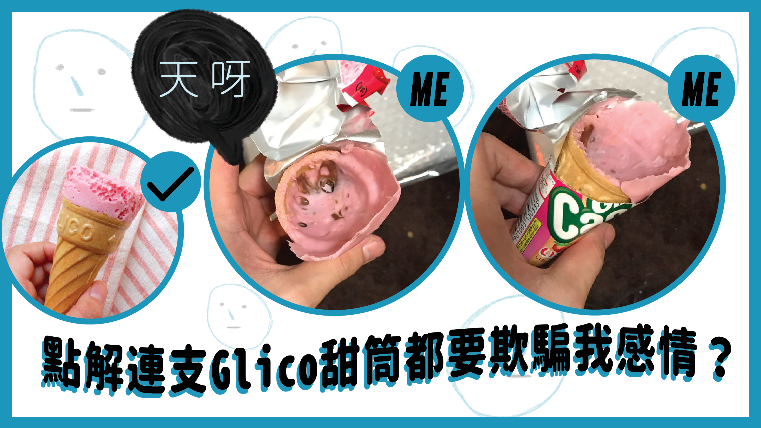 咦,說好的唔使放入雪櫃嘅脆脆甜筒呢喂?做咩而家得返個空空如也嘅雪糕筒同少少cream㗎?唔通連Glico甜筒都要好似啲包裝薯片咁,要加返啲空氣嚟保護個脆卜卜嘅雪糕筒?喂你咁樣樣嚟欺騙我感情,我喊畀你睇㗎……