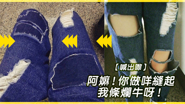 any肥啦,其實樂觀啲睇,阿嫲都係驚呢位朋友仔冷親對美腿啫,何況阿嫲已經好細心咁用返牛仔布嚟幫你縫窿,你咪欣賞下阿嫲嘅縫窿手勢!再講吖,阿嫲已經好畀面你,冇幫你縫埋嗰兩執「鬚鬚」㗎喇喎!
