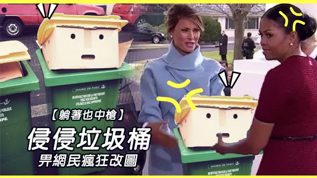 自從侵侵正式侵入白宮之後,大家都好忙呀,不過似乎就唔係忙住睇佢有咩新政策上場,而係睇佢啲圖集……最近就有個垃圾桶因為畀人強行塞咗個紙皮箱入去之後,加埋個黃色蓋個樣勁似侵侵而畀網民瘋傳喇。