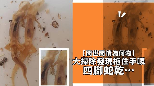 成日以為四腳蛇淨係喺牆角或者天花板先會出沒,點知原來燈罩都一樣係佢哋嘅地頭!話說台灣就有個網民大掃除嘅時候,發現燈罩度有兩條已經死去多時嘅四腳蛇乾!正確啲講,係就算死,都仍然手拖手嘅四腳蛇乾呀!唉,多情自古空餘恨,四腳爬爬無絕期……