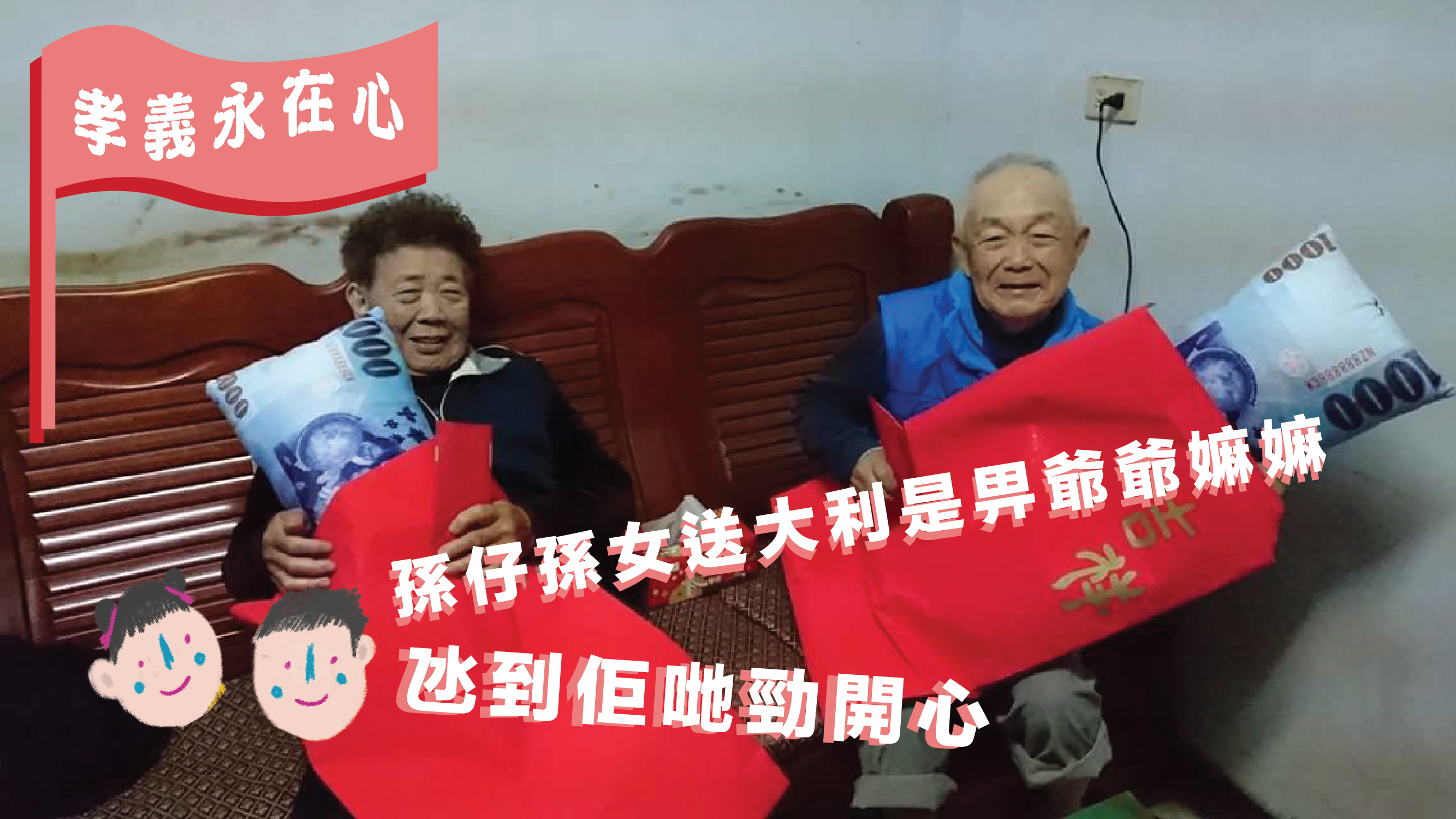 呢位網民仲話喎,過年大家就記得多啲陪下屋企人,氹下老人家開心喇……吖~你哋兩個孫仔孫女又真係幾有阿爺阿嫲心啵,真係夠晒孝義永在心呀下~