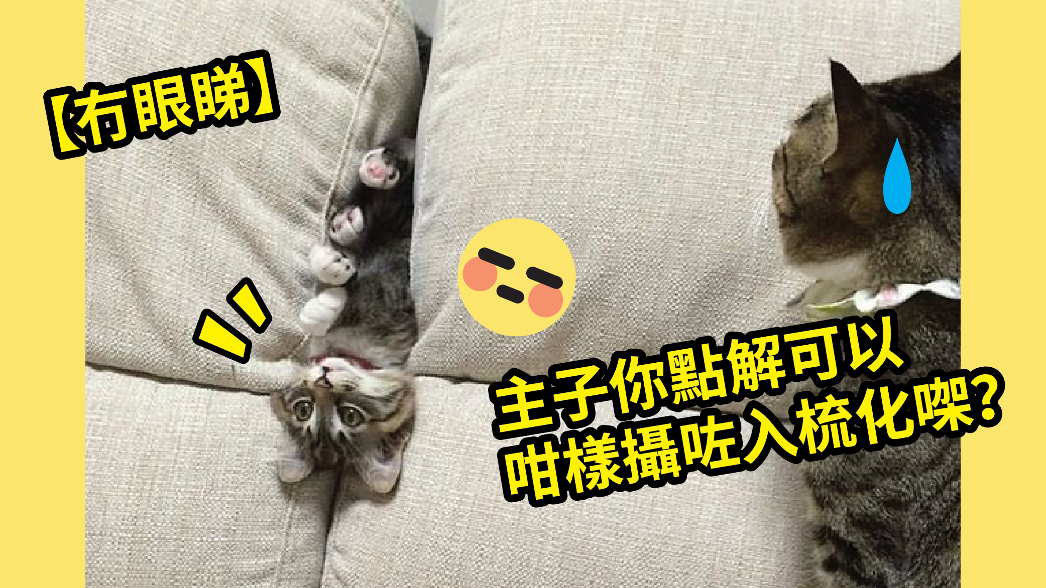 「救駕呀喵!」主子呀主子,你點解可以咁樣攝係個梳化度㗎?仲要好似巴黎鐵塔咁反轉再反轉,真係連貓媽都冇眼睇喇!不過奴才你咁大膽仲掛住影相,仲唔快啲拉返少主出嚟!