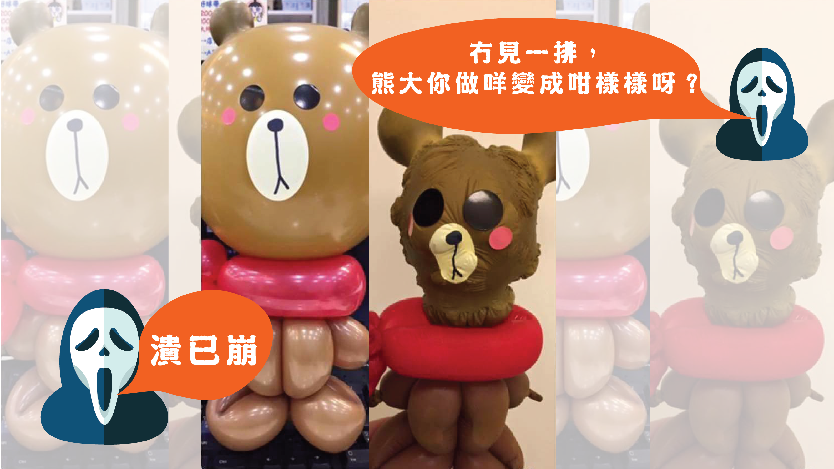 嘩,右邊嗰隻做咩事呀?你唔係同我講呢隻縮水兼皺皮嘅核突熊就係傳說中好受歡迎嘅Line熊大下話?