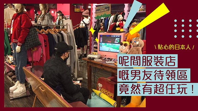 是咁的,話說最近有台灣網民就去咗日本廣島旅行,濕平期間就咁啱畀佢見到一間賣女人衫嘅舖頭入面竟然設有非常豪華嘅「男友待領區」。個「男友待領區」裡面有櫈坐、有機打,而且仲要係男士們嘅天堂-超級任天堂呀!!!