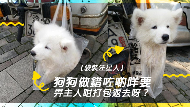 其實大家怪錯主人喇!呢隻狗狗之所以被入袋,係因為佢散步嗰陣貪玩跳落水,就算主人九秒九用強勁嘅臂彎救佢上水,佢上咗水之後都凍到騰騰震,所以主人咪唯有用膠袋幫佢保暖,再即刻帶佢返歸,費事佢吹親囉。