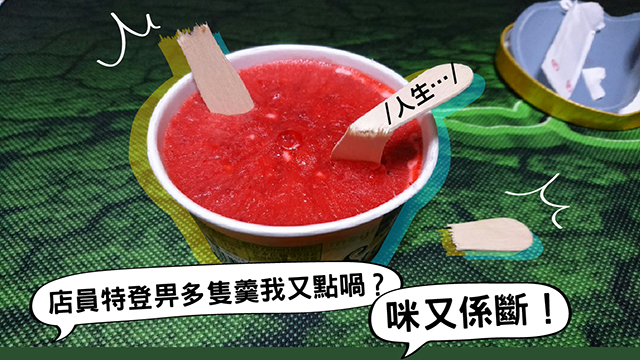 果然想食到呢杯雪糕都唔係咁容易呀下……呢位網民隻羹咁就啪斷咗喇!不過唔緊要,好彩有貼心店員畀多隻羹,一次唔得咪再試多次囉,希望再明天吖嘛~