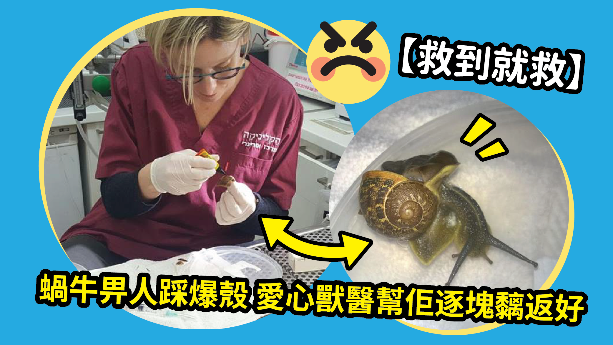 而家蝸牛仔又健康又開心,真係要多得呢個獸醫姐姐有救無類呀!呢位靚姐姐唔止心地好,仲要眼明手定咁好技術,話晒小蝸牛個殼咁細,要逐塊黐好都唔容易㗎嘛。醫生,多謝你呀!