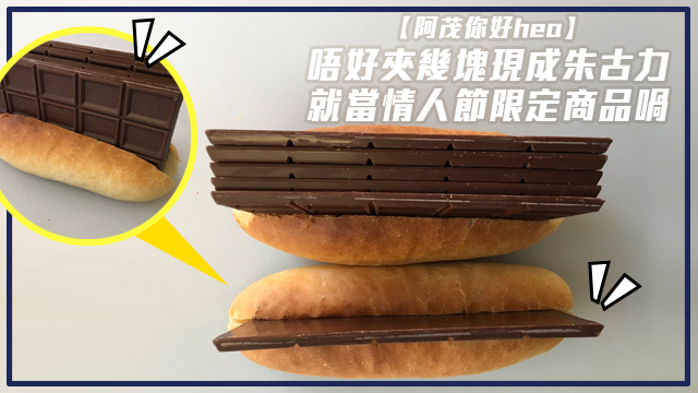 你而家咩態度先,話你兩句就發脾四咁話喇喎,夾多幾塊朱古力落去就算喇?腦細就話唔係~佢嘅意思係想講朱古力係代表愛呀嘛,咁呢個夾咗五塊朱古力嘅包咪代表好有愛囉。睇到呢五大塊朱古力,已經感受到份愛係幾咁heavy喇⋯⋯嗯,你話係咪係囉。