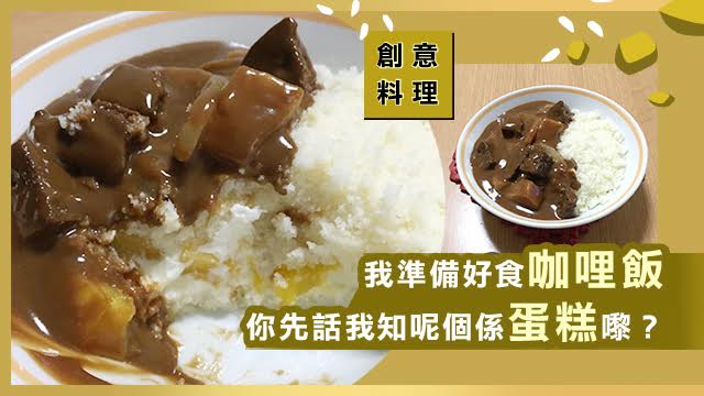 不過咖哩飯日日都食得啦,話明情人節,食咖哩飯又好似唔係幾應節喎?傻豬嚟嘅,日式咖哩牛肉飯只係佢表面掩飾,其實佢真正身份係一個蛋糕嚟呀,問你死未!飯就係海綿蛋糕吖,而淋喺上面嘅,就係朱古力醬喇,夠晒應節喇啩?