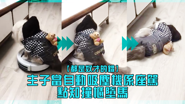 不過今次聖上自己一個出巡就出事喇!聖上好似平日咁坐上咗佢嘅座駕,準備去廚房睇下罐罐嘅儲備夠唔夠,點知部吸塵機竟然一直向住個櫃行唔轉彎喎!喂,吸塵機你自己有路行啫,都要顧下上面嘅主子㗎,主子,睇L住呀!