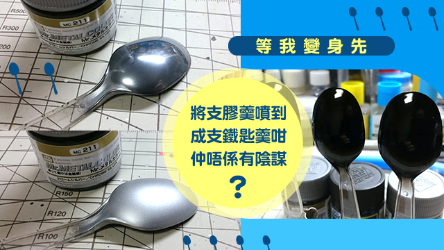 呢位網友就用咗佢嘅技術嚟證明畀大家睇,點樣可以用自己嘅方式將支膠羹噴到成支金屬羹咁嘞。要物質轉換?唔使鍊成嘅,用啱顏料咪得囉!
