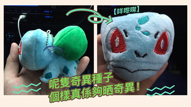嘩_,呢隻咩嚟㗎?乜奇異種子咁嘅樣㗎咩?唔好蝦毛毛膝頭哥唔睇《寵物小精靈》好喎!唉,原來隻奇異種子畀人縫到咁樣樣,唔怪得阿哥肯送畀細佬,又唔怪得阿細佬會一秒抌落地啦……