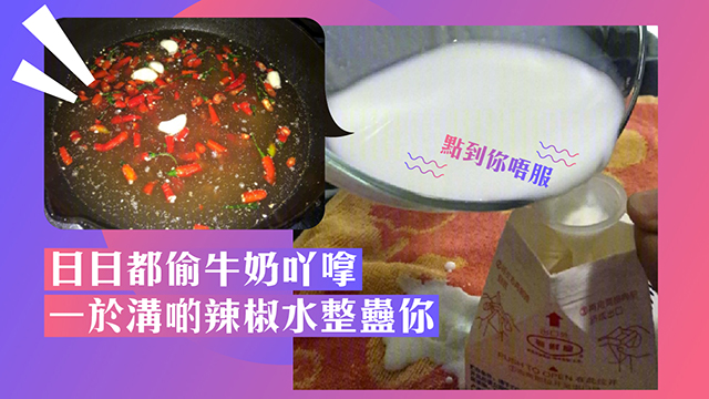 之後係咪將辣椒水倒落牛奶度呀?梗係唔係啦傻豬,都話咗牛奶畀人偷晒囉,唯有連牛奶都自己整啦~將鮮忌廉同豬油撈埋一齊,再加入辣椒水就完成喇!