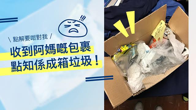 阿仔收到咁大箱意外驚喜,梗係即刻打返屋企問下咩事啦,點知阿媽好冷靜咁話:「嗰啲全部都係你本身應該掉出門口嘅垃圾」。