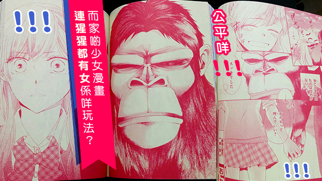 話說,最近有位日本網友就無意中發現一本少女漫畫《原始人彼氏》嘅劇情竟然講述一位女女同大猩猩談戀愛,望住個女女同大猩猩拖晒手咁sweet嘅畫面,搞到呢位網友都忍唔住要影低同一眾網民開心些牙一下!