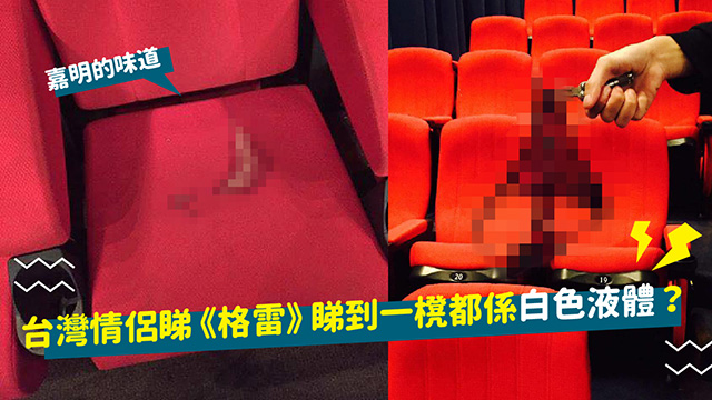 是咁的,話說有位台灣網民個fd子就喺戲院返工嘅。有日佢見到其中一場《格雷》只係得一對情侶入場,本身都冇乜嘢,點知到散場嗰陣佢就發現櫈上面多咗灘白色液體,而且仲有條黑色t-back畀人漏低咗?!嗱嗱嗱,你哋話對情侶當時喺戲院搞咩先搞成咁先?