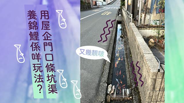 睇真啲,原來係屋企門口條坑渠嚟㗎!屋主喺坑渠其中一截嘅兩頭擺咗個隔,中間就用嚟養錦鯉,一物二用之餘仲好似有條護城河咁威水啵!(頭盔:睇下好喇,落大雨你就知死,廣告都有話啦,夏天,為大地帶來雨水,疏導雨水需要暢通嘅渠道吖嘛!)