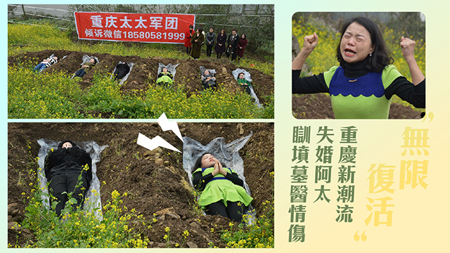 是咁的,其實呢個係重慶一位失婚阿太搞嘅輔導班嚟,專係畀一啲同佢一樣咁慘豬嘅失婚女人參加嘅。而問到點解阿太要搞個咁嘅班,佢就話通常啲人受咗咁大嘅情傷都會要生要死,所以最好就畀佢哋「死」下,咁佢哋會自然諗起自己有好多心事未了,唔想死住㗎喇!咁咪可以開始新生活囉!