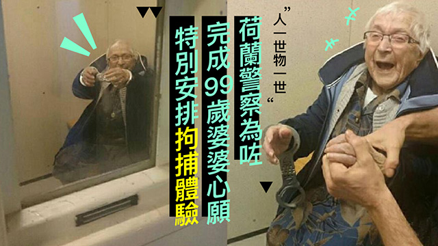 你睇阿婆戴住個手銬幾開心,仲笑到見牙唔見眼咁呀!真係睇唔出原來阿婆你好呢味嘢呀下~
