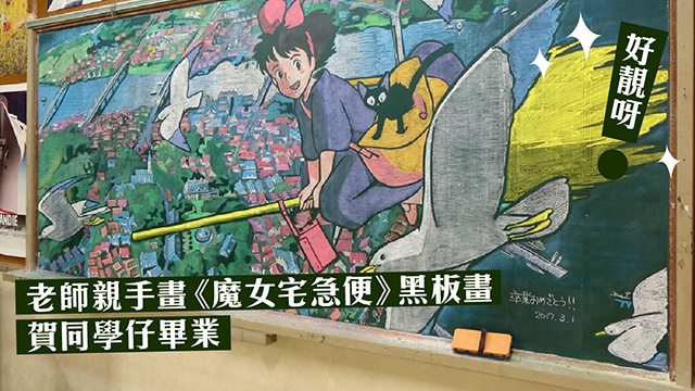 最近,日本奈良縣立郡山高中嘅美術老師濱崎佑貴都親手畫咗幅《魔女宅急便》嘅黑板畫嚟送畀一班即將要畢業同學仔,希望佢哋前程錦繡。腥些果然係腥些呀下,幅《魔女宅急便》黑板畫真係靚到揼一聲呀!