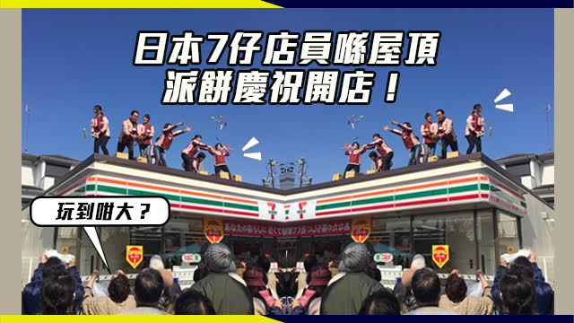 香港人就興分燒肉慶祝舖頭開張吖,唔知出咗名創意爆棚嘅日本人又會有咩搞作呢?嘩,呢間7仔新開張,成班店員竟然爬晒上屋頂拋啲餅落嚟畀班街坊呀!咁搶鏡嘅方式都畀你諗到,以後成條街嘅生意都畀你搶晒啦!