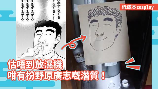 喺紙皮上面畫個公仔,開兩個窿,再黐喺放濕機上面,野原廣志get!咁都有得玩一餐,日本仔嘅創意真係點到你唔服!啲濕氣喺小新老竇個鼻窿度噴出嚟,令到本來冷冰冰嘅濕氣頓時增加咗一份溫暖,冇錯喇,就係父愛呀哈利……