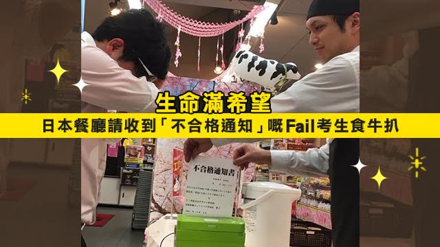 其實知道同學仔考唔到心儀大學,無論講咩說話都冇用㗎喇,講多無謂,行動最實際,日本京都有間餐廳就用行動安慰Fail考生喇。喺3月13日至31號,拎住張「不合格通知」去呢間餐廳,佢就會請你食一塊大約120克重、價值626円嘅牛扒喇。