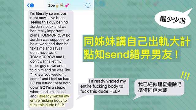話說外國有個叫Zoe嘅女仔犯咗天下男人都會犯嘅錯,就係偷食……嘩咁刺激咁大件事,點忍到口唔同好姊妹講呀!