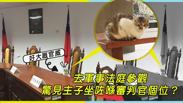 是咁的,有個台灣網民為咗做通識功課就去咗參觀軍事法庭,嗱,話晒軍事法庭,嚴肅啲,唔好笑呀下,莊重啲先得㗎。咦?點解審判官個位有兩個尖尖突咗出嚟嘅?