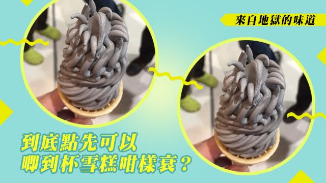 但係,笨唔係你鍾意細路或者有車牌就有資格做人見人愛嘅雪糕車叔叔㗎,最重要嘅條件係,你識唔識唧雪糕吖嘛!唔好見人拎住個脆筒,隻手扭幾扭就唧到杯軟雪糕出嚟就以為好易呀,你睇下上面呢杯軟雪糕,就明唔係人人都有唧雪糕嘅天份啦。好衰唔衰,佢仲要係芝麻味,一條條嘅形狀加埋灰灰黑黑嘅顏色,唔話係異形都唔得啦……平時啲細路一見到雪糕就笑到見牙唔見眼,但見到呢杯來自地獄嘅雪糕,肯肯定嚇到成個人都唔見埋。