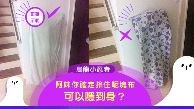 忍忍忍忍忍!做忍者除咗要識得忍,仲要識得隱!咪臭係講緊隱身術囉~其實隱身術呢家嘢都只係掩眼法嚟㗎啫,咁忍者又唔係變色龍,點都要有返啲道具幫手嘅~首先就要有塊布!塊布要啱大細遮到個人之餘仲要同幅牆同色同款,咁先可以一拉布就你睇我唔到㗎嘛~