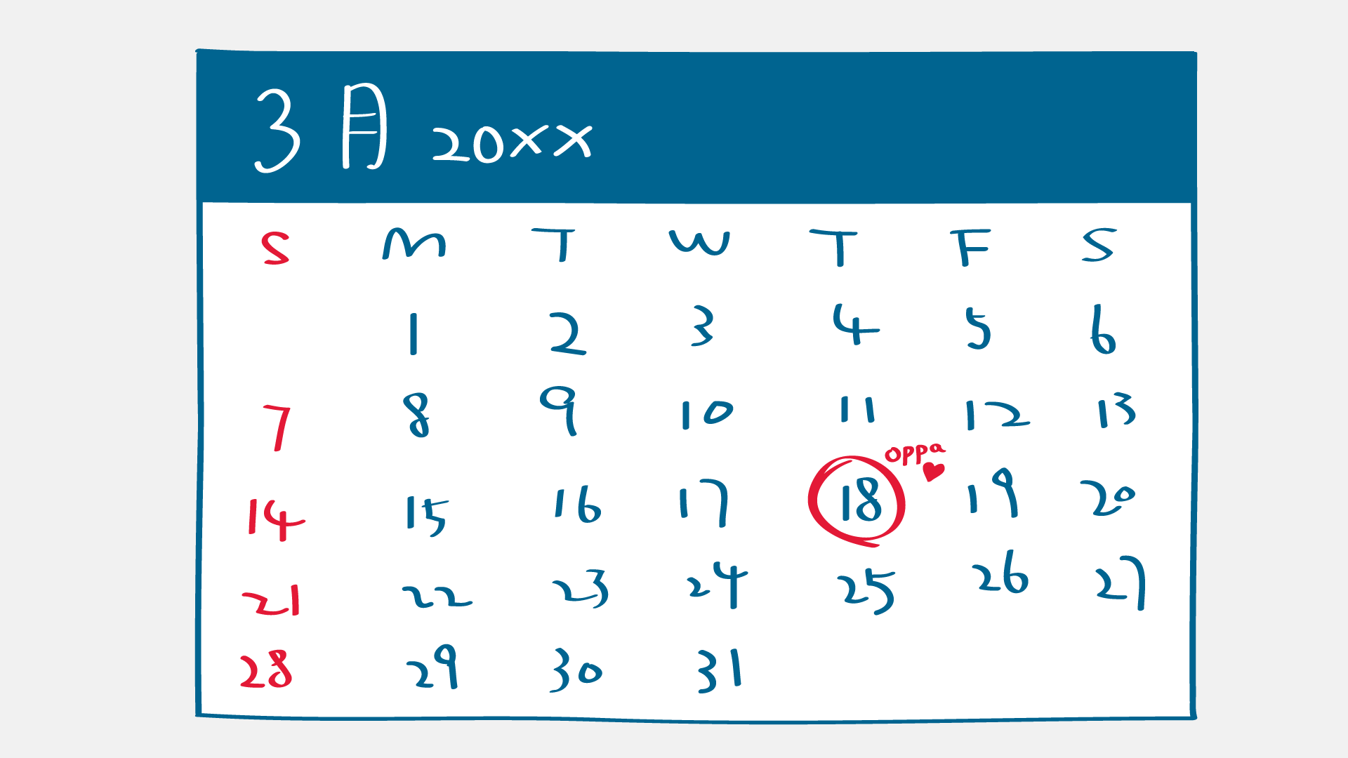 mark低oppa退伍嘅日子,然後間唔中就望下個日曆。望下一日,望下又一日,希望可以呢日可以快啲到啦!