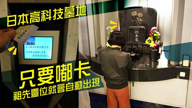 呢個高科技墓地喺東京嘅大廈入面,只要用IC卡一嘟,機器就會自動將祖先牌位、骨灰龕佈置好,送到參拜位置㗎喇。而家土地問題咁嚴重,好多人死後都要排好耐先排到骨灰龕位,用呢個方法就可以慳好多位喇,而且參拜位置仲好似自修室咁分晒一格格,孝子賢孫咪唔怕同其他人迫囉。
