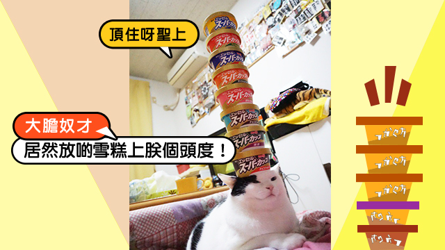 一二三四五六⋯⋯仲要放8杯雪糕咁多?作死你呀,一陣凍親主子個頭頭或者畀啲雪糕砸親咁點算呀!不過主子果然係主子,無懼世事變改,都仲喺度坐到定一定,驚都未驚過呀~